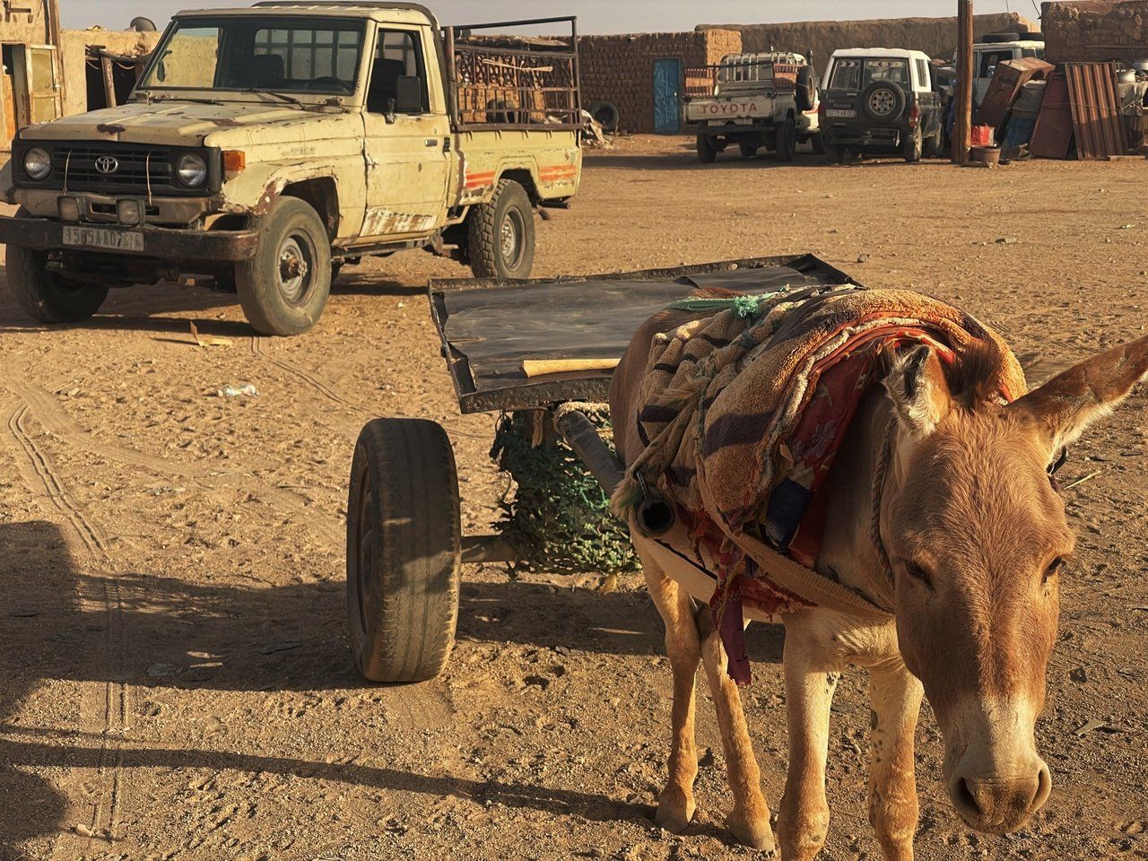 Choum ist keine interessante Stadt, aber aus drei Gründen dennoch wichtig für Besucher. Erstens liegt der Ort, dessen Einwohnerzahl auf 4500 geschätzt wird, in der Nähe der Straße von Atar nach Zouérat und wird von Transportunternehmen oft als Halte- und Organisationspunkt genutzt. Zweitens befindet sich 60 km westlich der größte Monolith Mauretaniens, der Ben Amira. Da keine Stadt näher an ihm liegt als Choum, dient die kleine Ortschaft auch als Ausgangspunkt für Ausflüge. Vor allem aber ist Choum von Atar aus gesehen der nächstgelegene Bahnhof für den Eisenerzzug von Zouérat nach Nouadhibou. Täglich passiert der endlos lange (leere) Güterzug Richtung Zouérat die kleine Stadt, täglich kehrt er mit Eisenerz gefüllt zurück. Von sehr, sehr wenigen Ausnahmen abgesehen hält er auf diesem Weg auch in Choum, meist zwischen meist zwischen 6 und 11 Uhr abends. In diesem Sinne ist diese Ortschaft, die nur 4 km von der Grenze zur Westsahara entfernt liegt, von strategischer Bedeutung für unsere Rundreisen durch den Adrar. Nach einer fast zweistündigen Fahrt von Atar aus verbringen wir etwas Zeit in Choum und erfahren so, wann der Zug ankommen soll. Für Unterkunft und Verpflegung während der Wartezeit ist gesorgt. Von Choum aus begeben wir uns für ca. 12 Stunden auf eine abenteuerliche Reise in Richtung Atlantik, nach Nouadhibou. Fun Fact: In der Nähe von Choum durchquert der Zug auf einer Länge von 5 km sogar das Staatsgebiet der Westsahara.