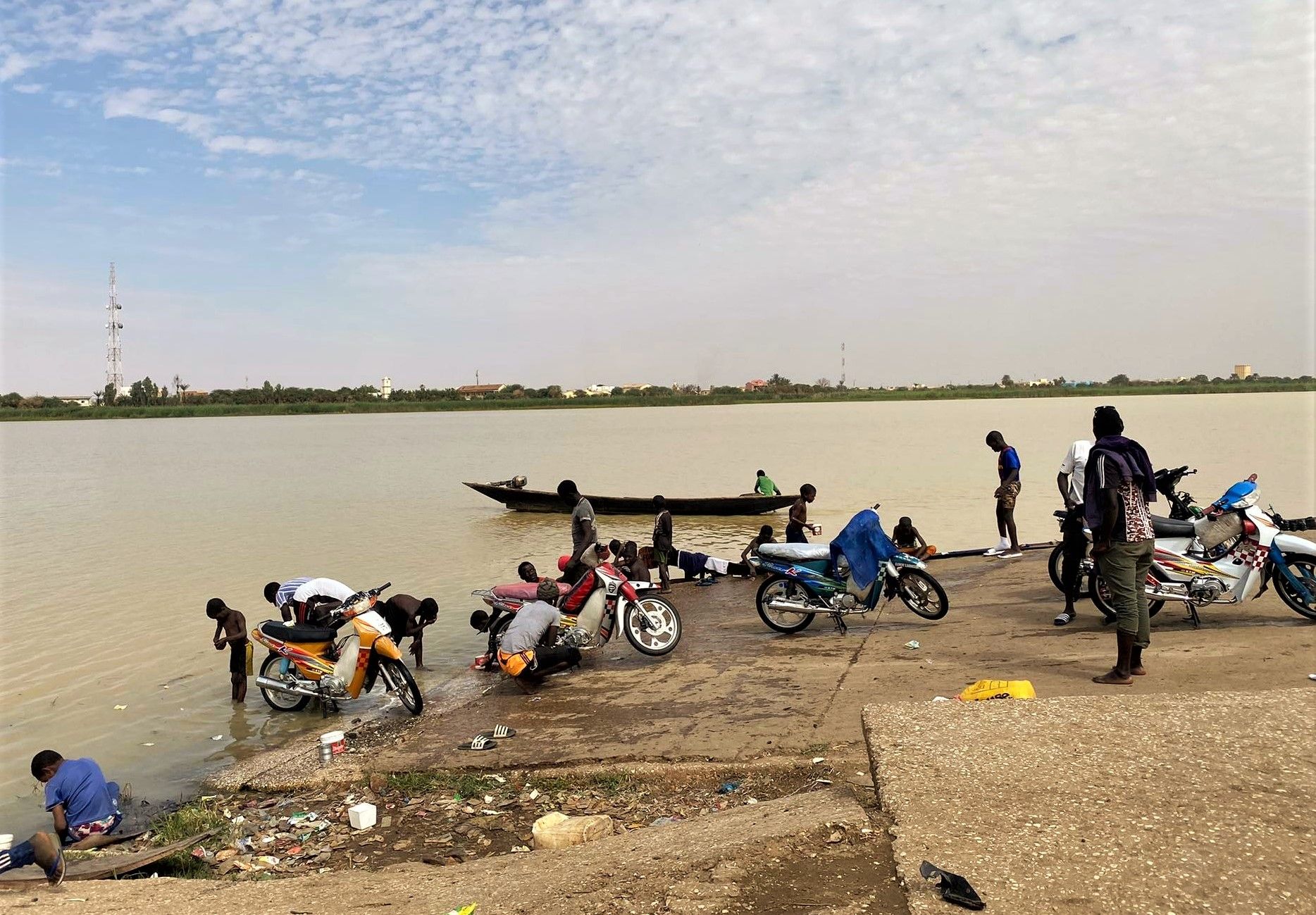 Rosso ist die Hauptstadt der Region Trarza und gelegen im äußersten Süden derselben. Besondere Bedeutung kommt dem 75.000-Einwohner-Ort als Grenzübergang in den Senegal zu. Die Fähre über den Senegalfluss, die Rosso mit Rosso verbindet, fährt täglich von 8-12 und 15-18 Uhr (Stand: 31.05.2021). Sie haben richtig gelesen. Auch auf senegalesischer Seite heißt der Grenzort Rosso. Die offizielle Schreibweise lautet daher Rosso (Mauretanien) und Rosso (Senegal). Aufgrund seiner Grenzlage ist Rosso eines der wichtigsten Wirtschaftszentren in Mauretaniens Süden. Wenngleich der bedeutendste ist Rosso nicht der einzige Übergang in den Senegal. Auch im weiter westlich gelegenen Diama existiert ein seltener genutzter Übergang, der sich für Grenzüberquerungen aus dem Diawling-Nationalpark eignet. Rosso selbst ist keine schöne Stadt. Auch hier macht sich ein enormes Bevölkerungswachstum bei gleichzeitig ungenügender Stadtplanung bemerkbar. Rosso ist einer der wenigen Orte in Mauretanien, in denen es eine Kirche gibt. Der Ort am Senegalfluss ist in keine geplanten Touren eingebettet, allerdings können wir grundsätzlich jede Tour mit einer Fahrt nach Rosso abschließen, sollten Sie in den Senegal reisen wollen. Wir helfen auch bei den Formalitäten, mehr Infos dazu unter FAQ.